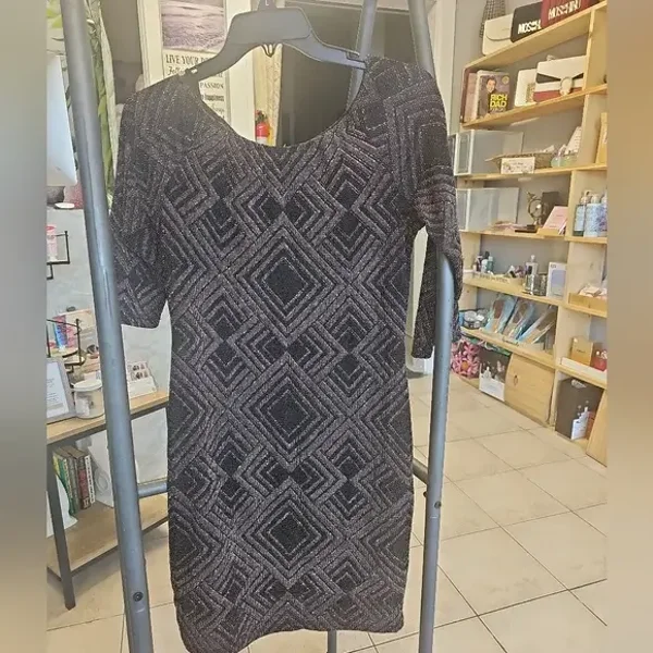 Sparkle Elegant black & Gold dress featuring a striking geometric pattern. Perfect for any occasion.