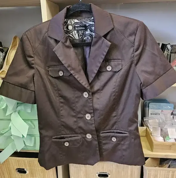 This elegant brown blazer is perfect for any occasion. Its sleek design offers a sophisticated look, making it a versatile addition to your wardrobe.