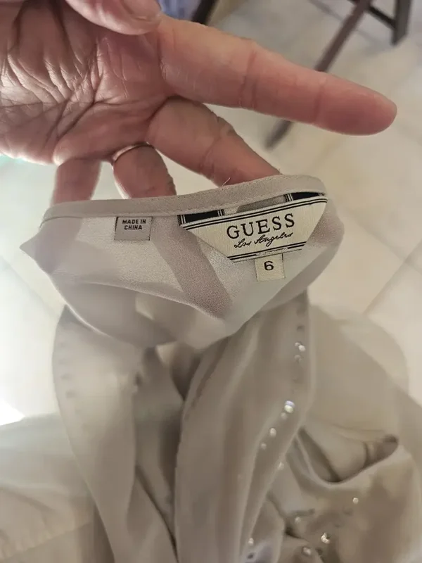 Sleeveless sheath dress with draped cowl neckline. Subtle stud embellishments across the bodice. Ruched sides create a fitted skirt silhouette. Sleek, neutral tone for versatile styling.